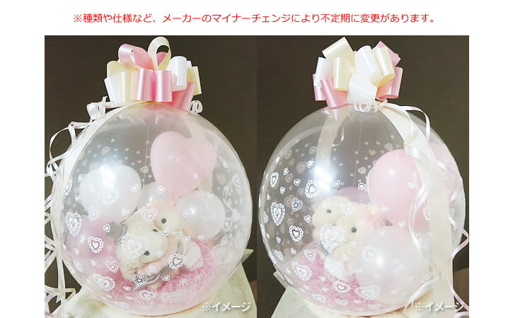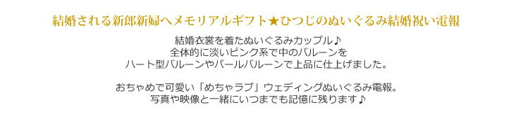 結婚式のぬいぐるみ電報、バルーン電報におすすめです! 淡いピンク系のリボンやミニバルーンで上品に仕上げました。